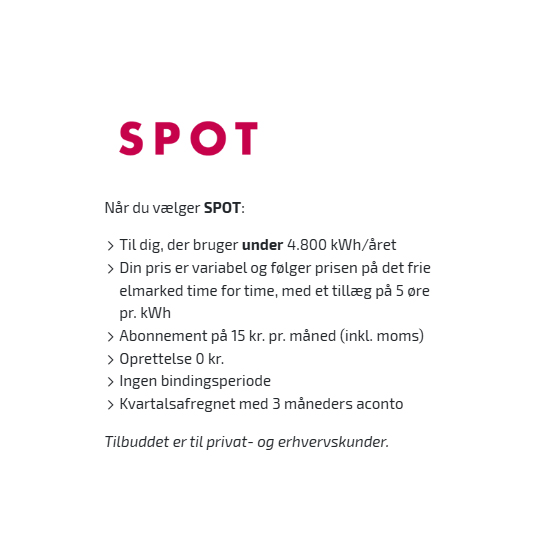 En el-aftale hos Vestforsyning er variabel, så din pris er timebaseret ud fra prisen på el-børsen + dit tillæg pr. kWh og abonnement i henhold til, hvilken el-aftale du har.
